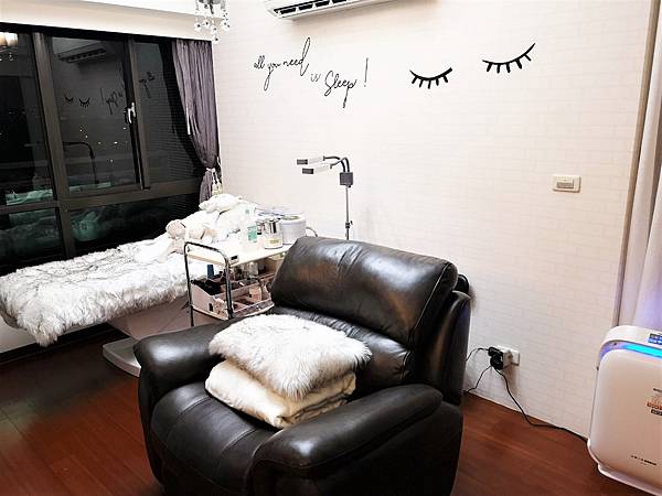 工作區有張厲害的電動美容床以及接睫毛的皮椅,可以很舒服地躺著讓老闆娘服務 >///<
